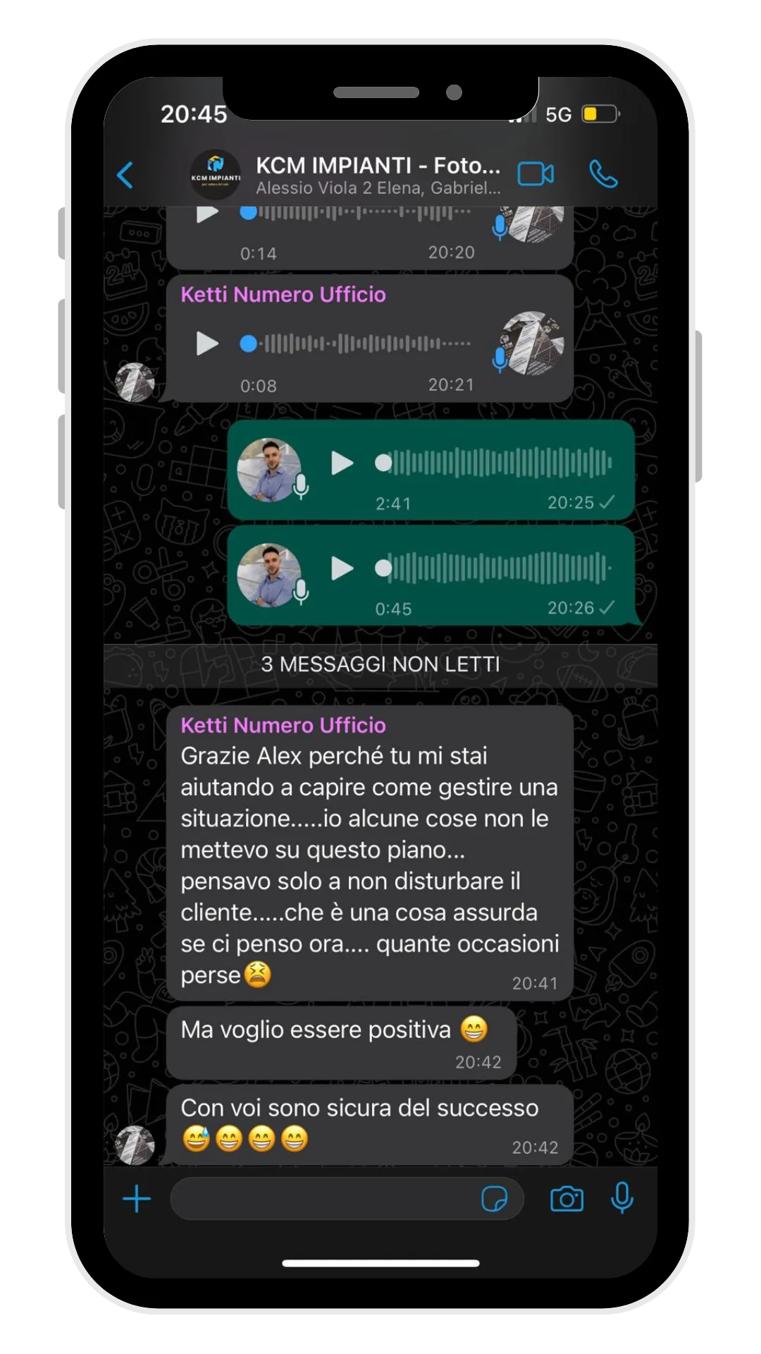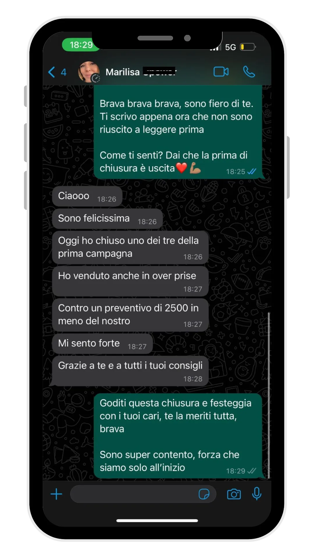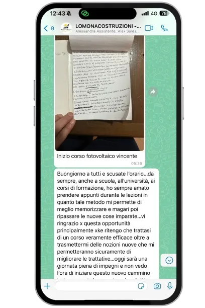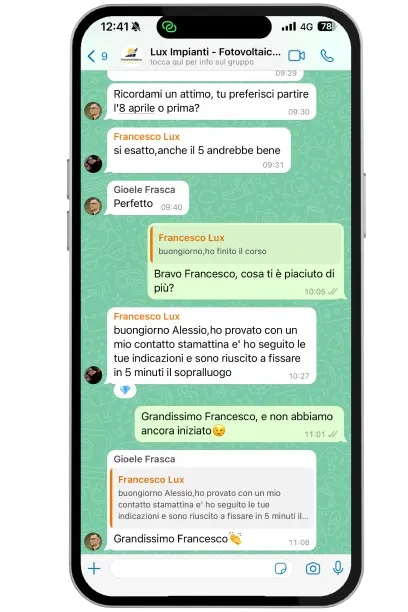 Verrai inserito all'interno di un gruppo WhatsApp con la nostra Project Manager, che ti affiancherà 24/7 e sarà pronta a risponderti per qualsiasi evenienza.